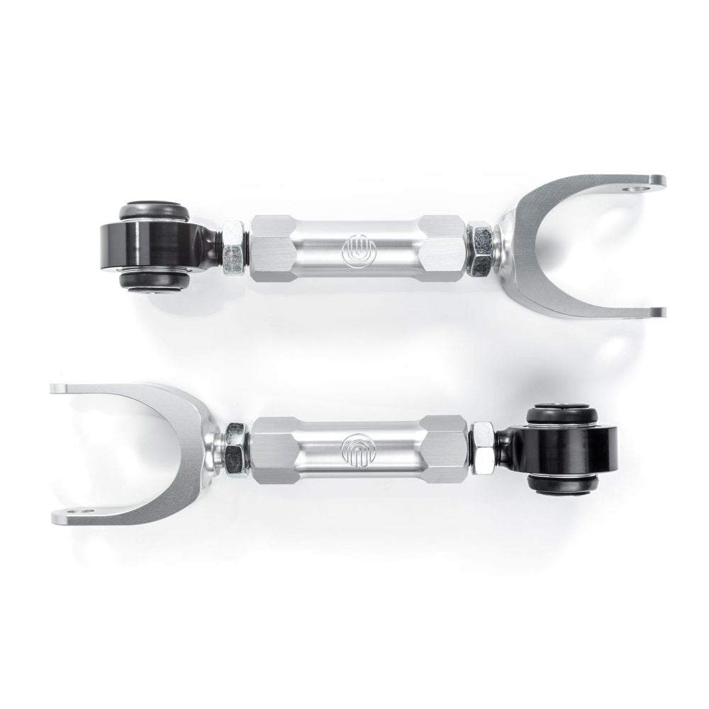 Lowered your car and concerned about the Model 3 rear tyre wear problem? The Unplugged Performance Billet Adjustable Rear Camber Arm Set for Tesla Model 3 is your solution. By introducing rear camber adjustment, these ultra-strong billet arms give you full freedom in alignment settings – something that the standard car (unfortunately) gives you no option to adjust. Essential for lowered cars.