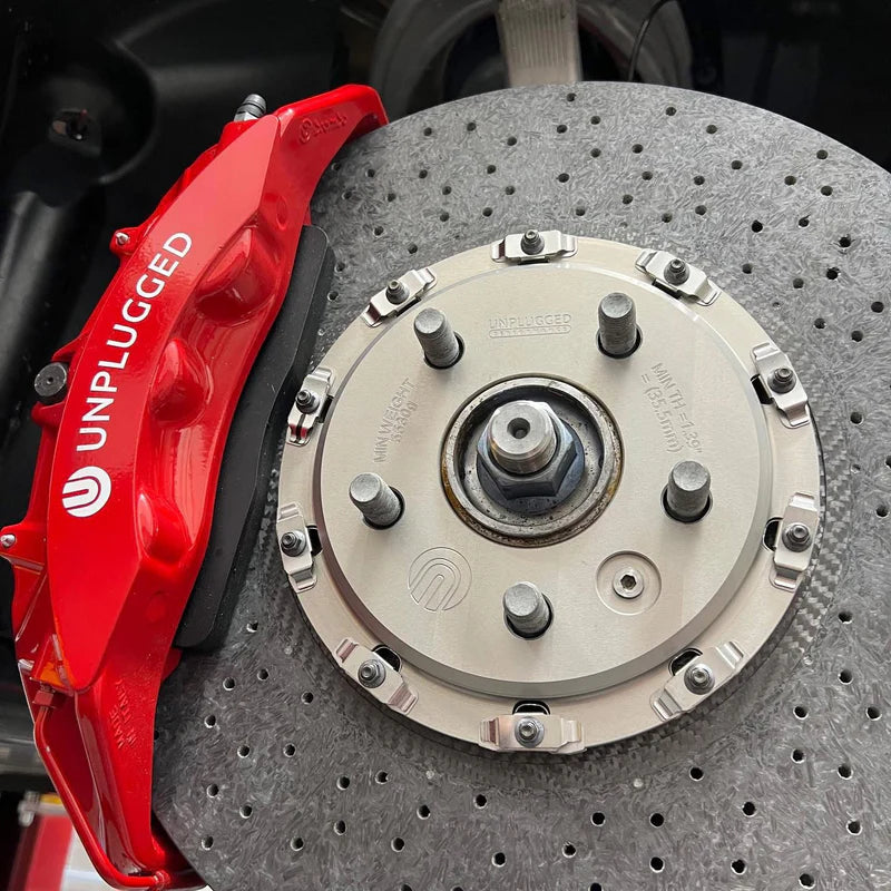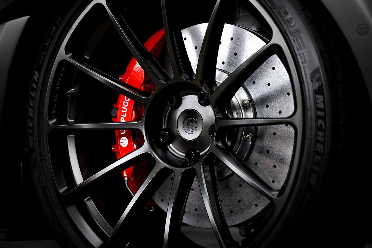 These are proper supercar brakes for your Model 3 or Y. In looking for the ultimate solution to not only improve braking performance but also brake life, we turned to the sports car world and the carbon-ceramic disc technology offered on modern supercars. By specifying carbon-ceramic discs, in combination with massive 6-piston calipers and stainless steel braided lines, the braking distance is dramatically reduced, brake fade becomes almost non-existent, and pedal feel is noticeably improved. Plus the added benefit of no more brake dust on your alloys ever again!