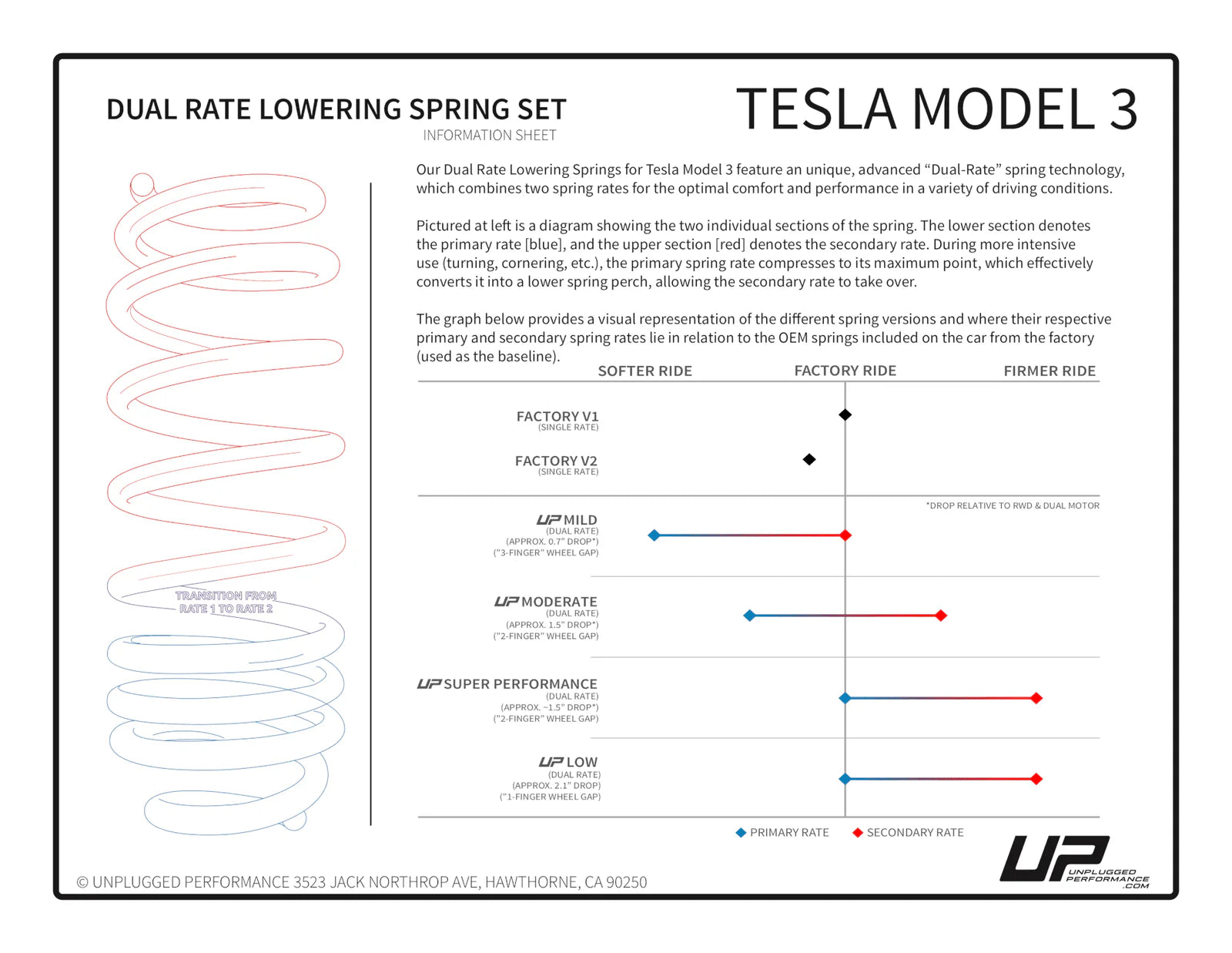 The first modification to make to your Model 3! Our Dual Rate Linear Lowering Spring Set for Tesla Model 3 removes those wheel arch gaps for a ride height that lowers the centre of gravity, reduces drag and increases range, and transforms the looks.