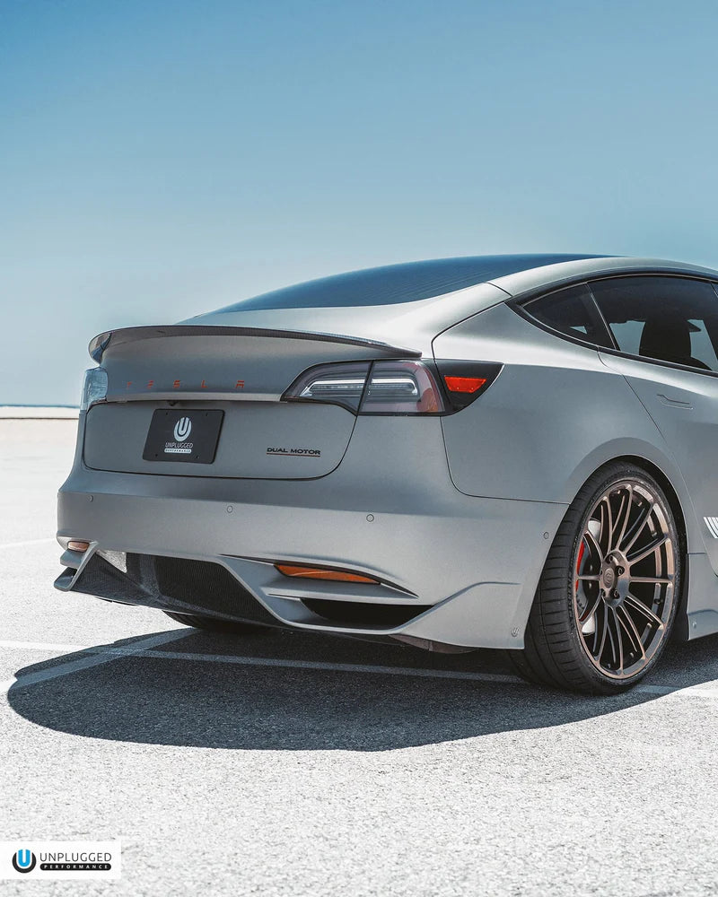 Transform the rear end of your Model 3 with the Unplugged Performance Ascension Rear Bumper for pre-facelift Tesla Model 3. The perfect complement with a matched style to our Ascension front, side skirt and rear spoiler options.