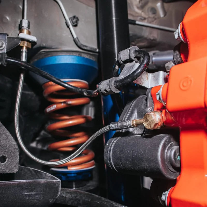 Simply one of the most cost-effective improvements you can make to your Model 3 or Model Y braking system, our Unplugged Performance Stainless Steel Sport Brake Line Set replaces all four rubber brake hoses with these high quality, USA-made braided steel lines.