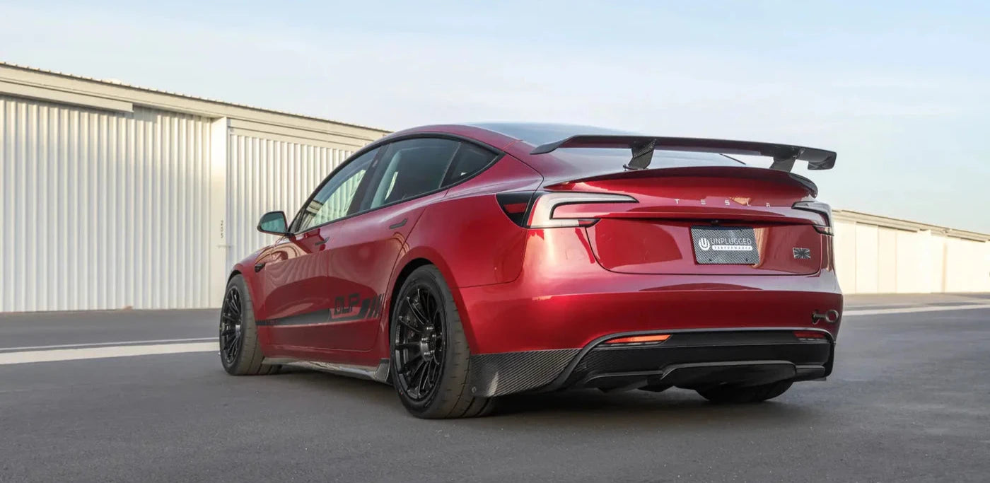 The Unplugged Performance Carbon Fiber Full Aero Kit is the first ever body kit for the 2024 Tesla Model 3 Performance. Designed and engineered through CFD testing for maximum performance, and stability, this kit includes all UP carbon fibre front aero components including the Front Lip Spoiler, Canards, Deflectors, Racing Diffuser, as well as the Side Skirts, Rear Spats, Rear Diffuser Trim, and Ascension-R Rear Wing.
